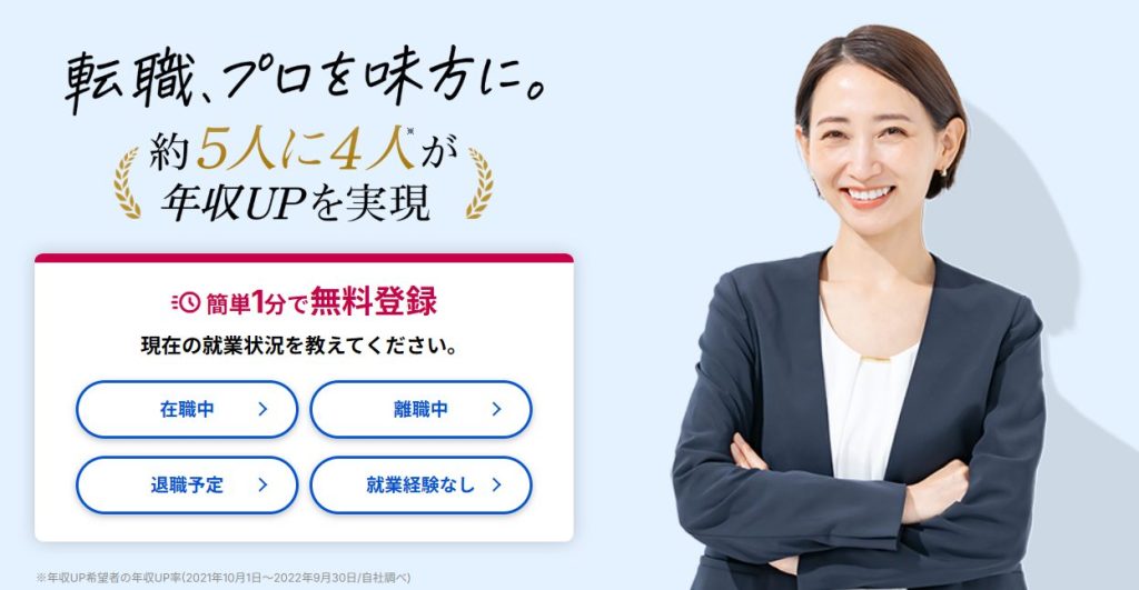 創業50年の歴史を持ち、取引企業数3万社以上という国内上場企業との強いパイプが最大の強みです。累計59万人の支援実績に裏打ちされたノウハウがあり、利用者の約6割が年収アップを実現しているなど、ハイクラス層への確かな実績を誇ります。